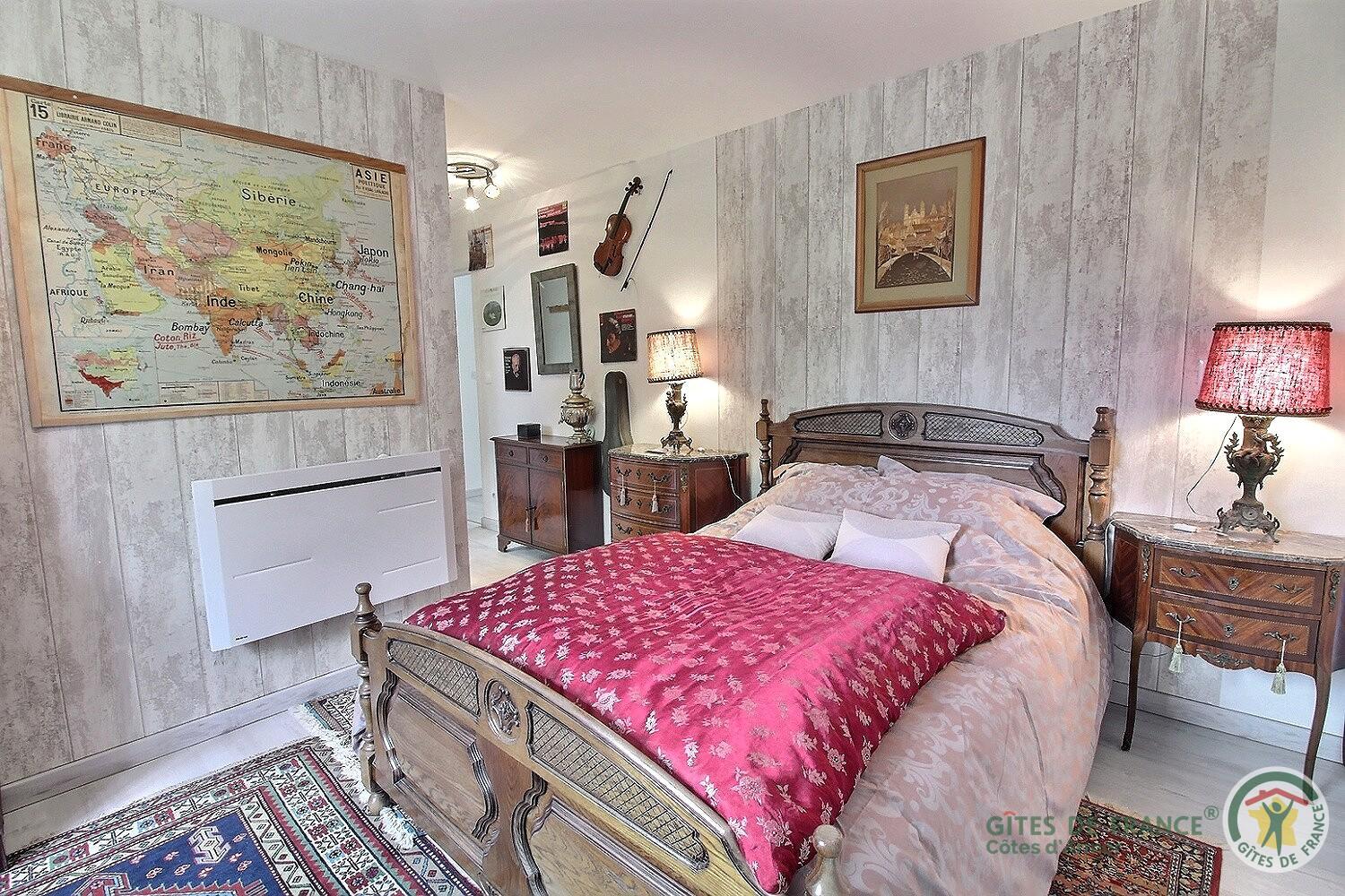 Elle se situe au 1er étage, orientée Ouest afin de profiter des couchers de soleil sur le village pittoresque de Gouarec.