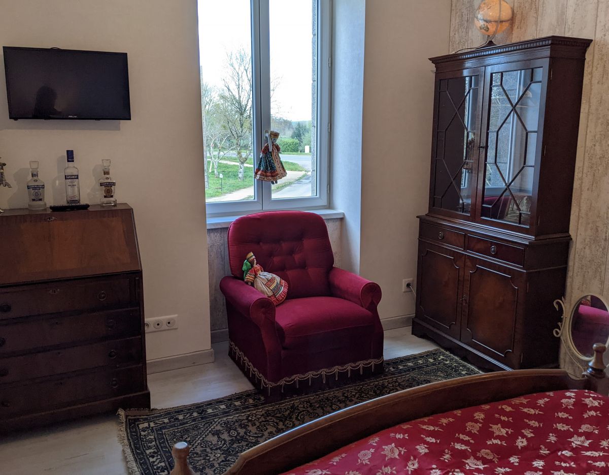 Elle se situe au 1er étage, orientée Ouest afin de profiter des couchers de soleil sur le village pittoresque de Gouarec.